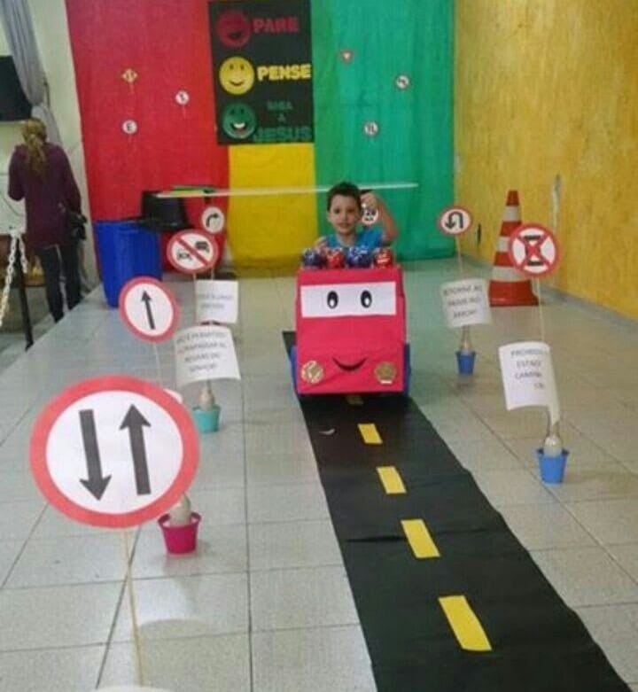 - Carrera de obstáculos: Creamos un mini circuito donde los niños deben respetar señales como “Pare”, “Cruce de peatones” o “Giro a la derecha”.