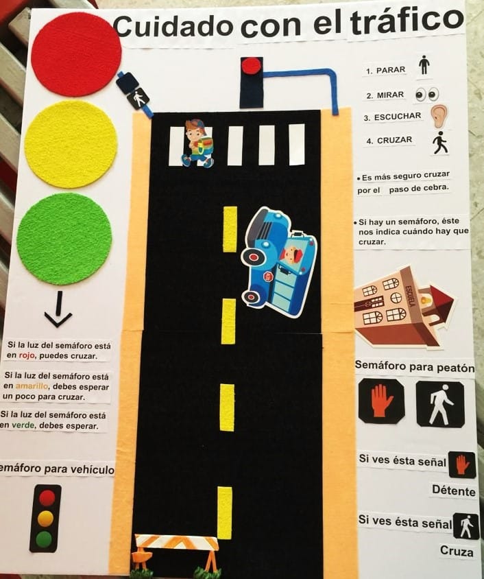 Podemos hacer carteles coloridos con frases como “¡Respetemos las normas, salvemos vidas!” o “Los peatones también tienen derechos”. También podemos dibujar los símbolos del tránsito y explicar su significado. Aca te dejamos algunas imagenes de afiches, carteleras y banners sobre la seguridad vial.