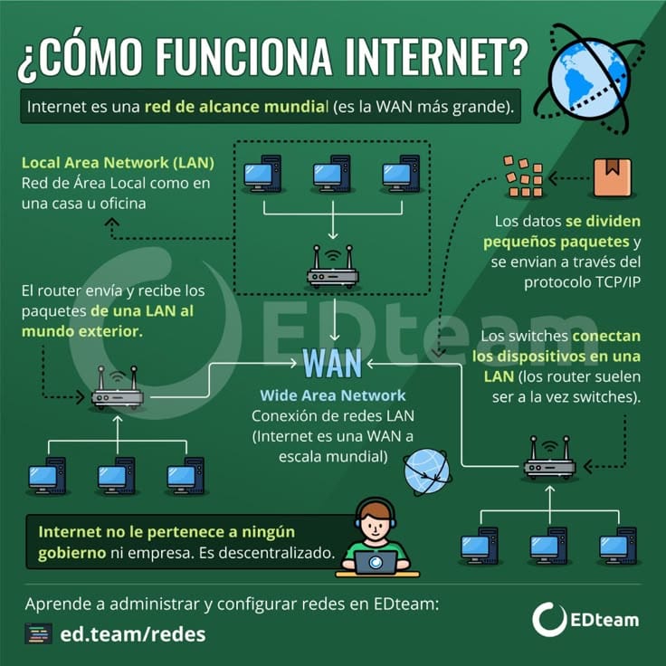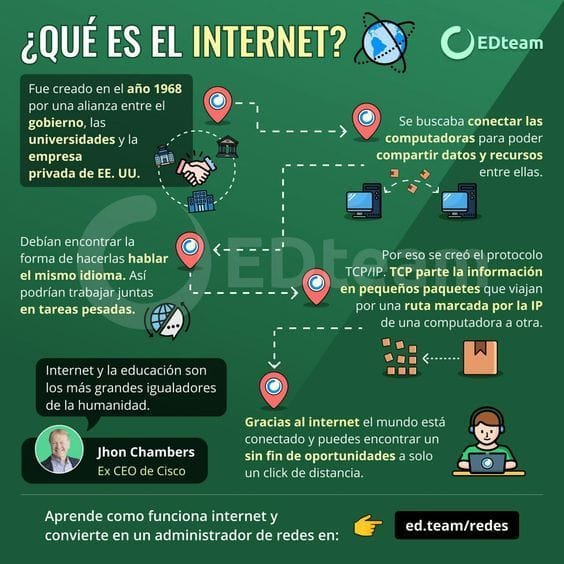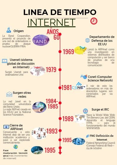 Hace muchos años, en los años 60, surgió la idea de crear una red que permitiera a las computadoras comunicarse entre sí. Los primeros pasos fueron dados por científicos en Estados Unidos, quienes crearon ARPANET, una red que conectaba computadoras de distintas universidades y centros de investigación. Aunque era muy pequeña en comparación con lo que conocemos hoy, este invento revolucionó la manera de compartir información. Durante los años 80 y 90, el Internet empezó a crecer rápidamente, y pronto se convirtió en una herramienta accesible para personas de todo el mundo.