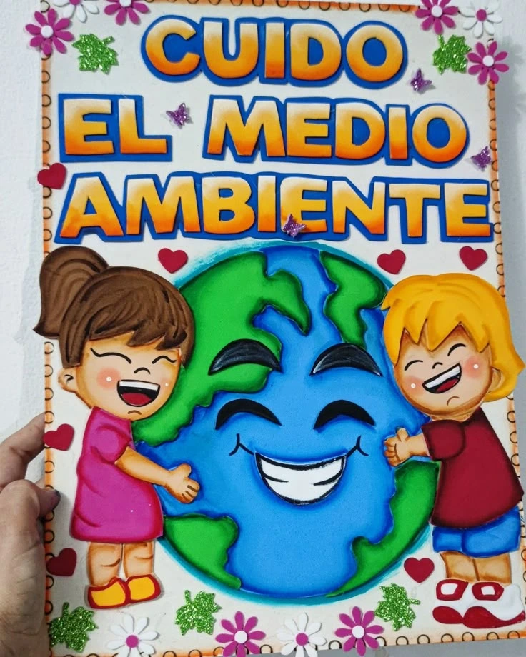 Una opción es armar una cartelera interactiva con sobres donde los chicos coloquen mensajes ecológicos o compromisos personales, como “cierro la canilla al lavarme los dientes” o “no tiro basura en la calle”. También se pueden incluir imágenes, noticias actuales relacionadas al cambio climático o códigos QR que lleven a videos educativos.