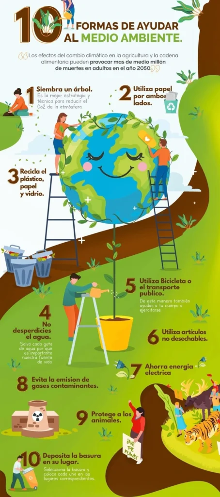 Una forma efectiva de transmitir esta información es con infografías. Son visuales, claras y atractivas. Podés crear una infografía sencilla con tus estudiantes donde se incluyan datos como: “cada año se generan más de 2.000 millones de toneladas de residuos”, o frases como “pequeñas acciones generan grandes cambios”. Usá colores verdes, íconos de plantas, agua y animales para reforzar el mensaje. También podés imprimirla y colocarla en la cartelera escolar o subirla a las redes del colegio.