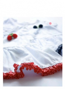 Vestidos para beba realizado en algodon liviano, sin mangas y con volados. cinta cuardrille plisada al bies y detalle en pompones estilo cerezas.