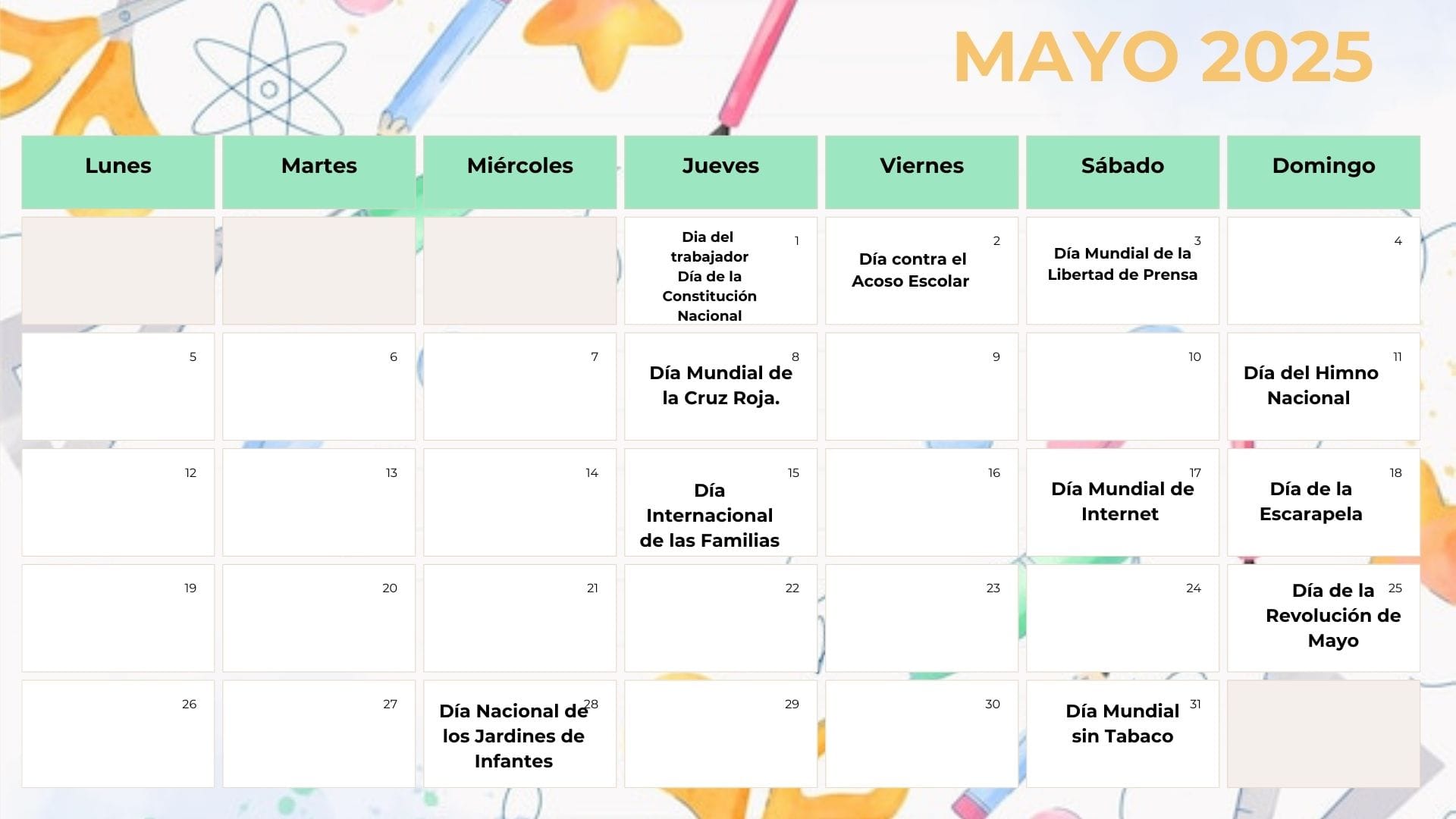 Mayo es un mes clave dentro del calendario escolar, ya que cuenta con numerosas efemérides que permiten reflexionar sobre la historia, la cultura y valores fundamentales. Estas fechas especiales brindan una excelente oportunidad para enriquecer las actividades en el aula y fomentar el aprendizaje significativo en los estudiantes.A continuación, te...