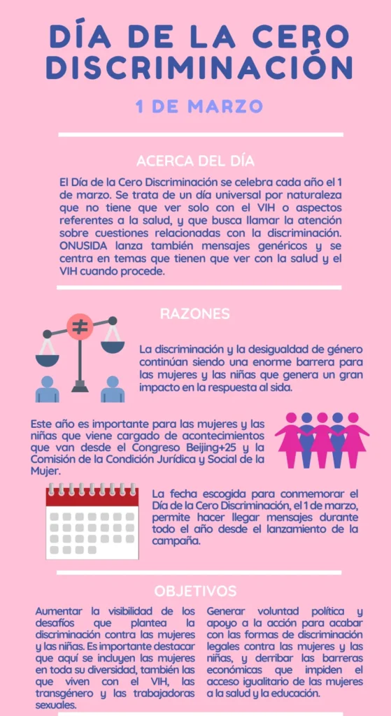 El 1 de marzo celebramos el Día de la Cero Discriminación, un día clave para reflexionar sobre la importancia de la inclusión y el respeto hacia todas las personas. Este día nos invita a pensar en cómo podemos promover un entorno sin prejuicios, donde cada individuo pueda vivir con dignidad y sin ser juzgado por su género, raza, orientación sexual, religión, entre otros factores.