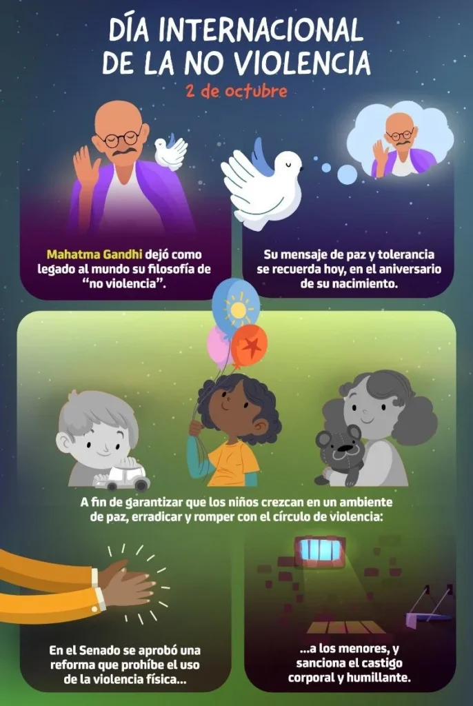 El 2 de octubre se celebra el Día Mundial de la No Violencia en conmemoración del nacimiento de Mahatma Gandhi, uno de los principales líderes que promovió la paz y la no violencia en la lucha por la independencia de la India. Este día es una oportunidad perfecta para reflexionar sobre la importancia de la no violencia en nuestra sociedad y cómo podemos inculcar este valor en los más pequeños desde una edad temprana.