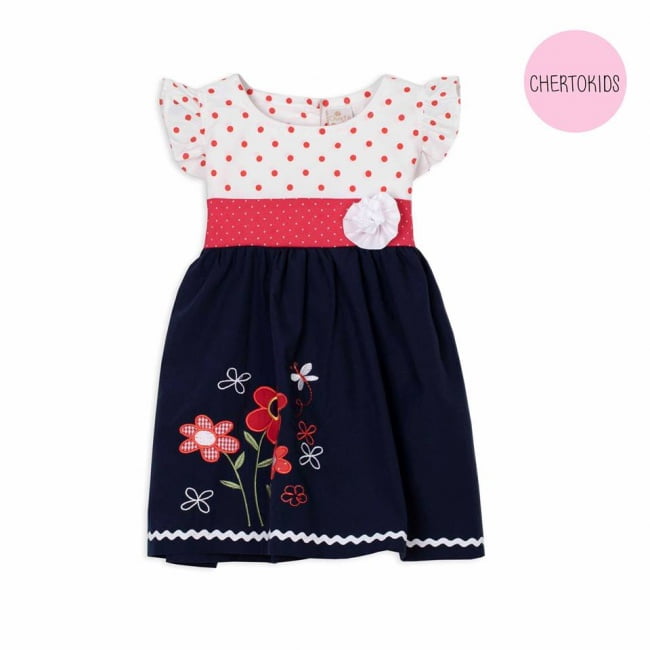 vestido beba combinado con aplique de flor bordada Cherto Kids primavera verano 2019