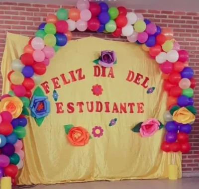 Rscenarios con globos y flores para el dia del estudiante