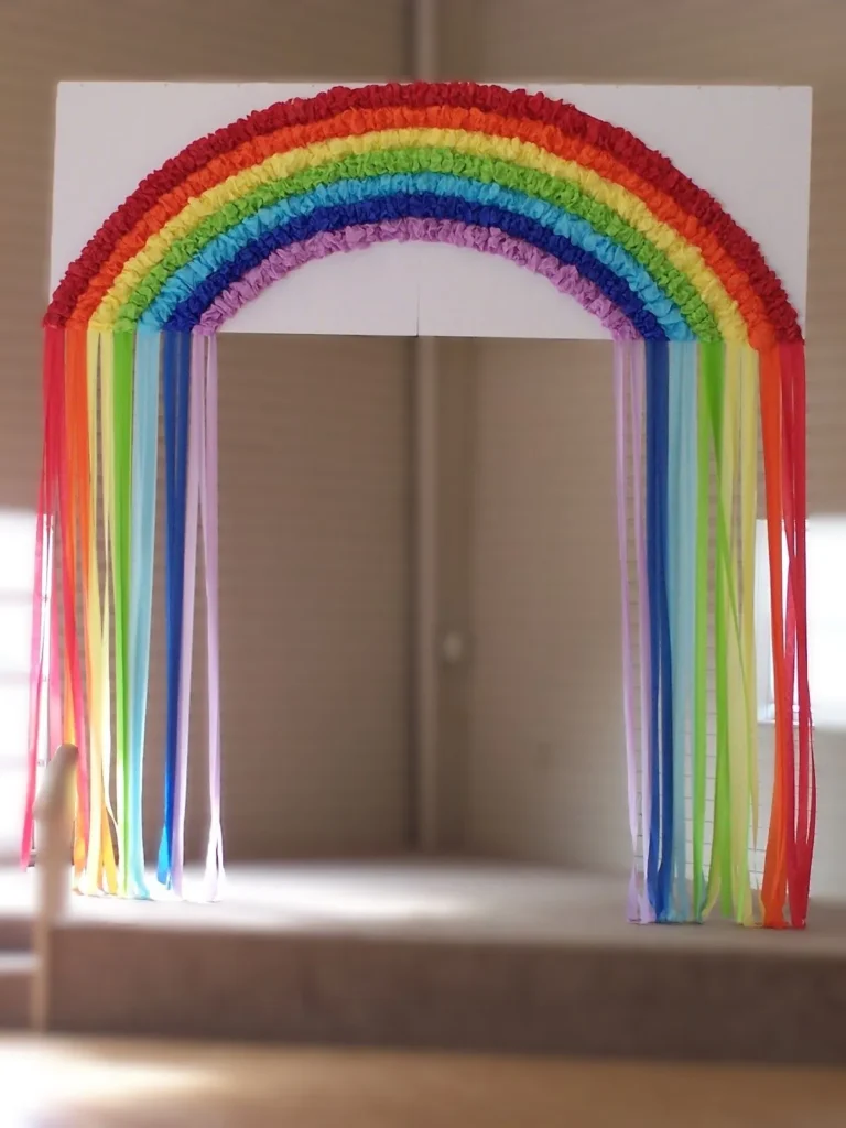 Transforma los pasillos en un festival de colores con lluvias de flores y mariposas colgantes. Utiliza papel crepé y cintas para crear arcos iris que guíen el camino. Añade plantas en macetas decoradas por los estudiantes para dar un toque natural y fresco.