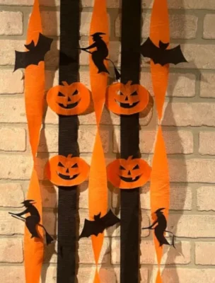 Ideas para Halloween guirnaldas de papel creppe negro y naranja