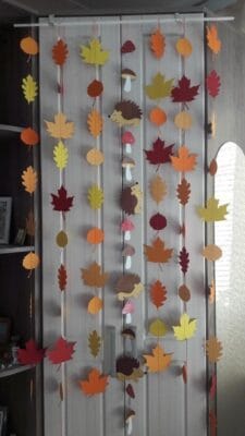 decorar puerta otoño cortina hojas