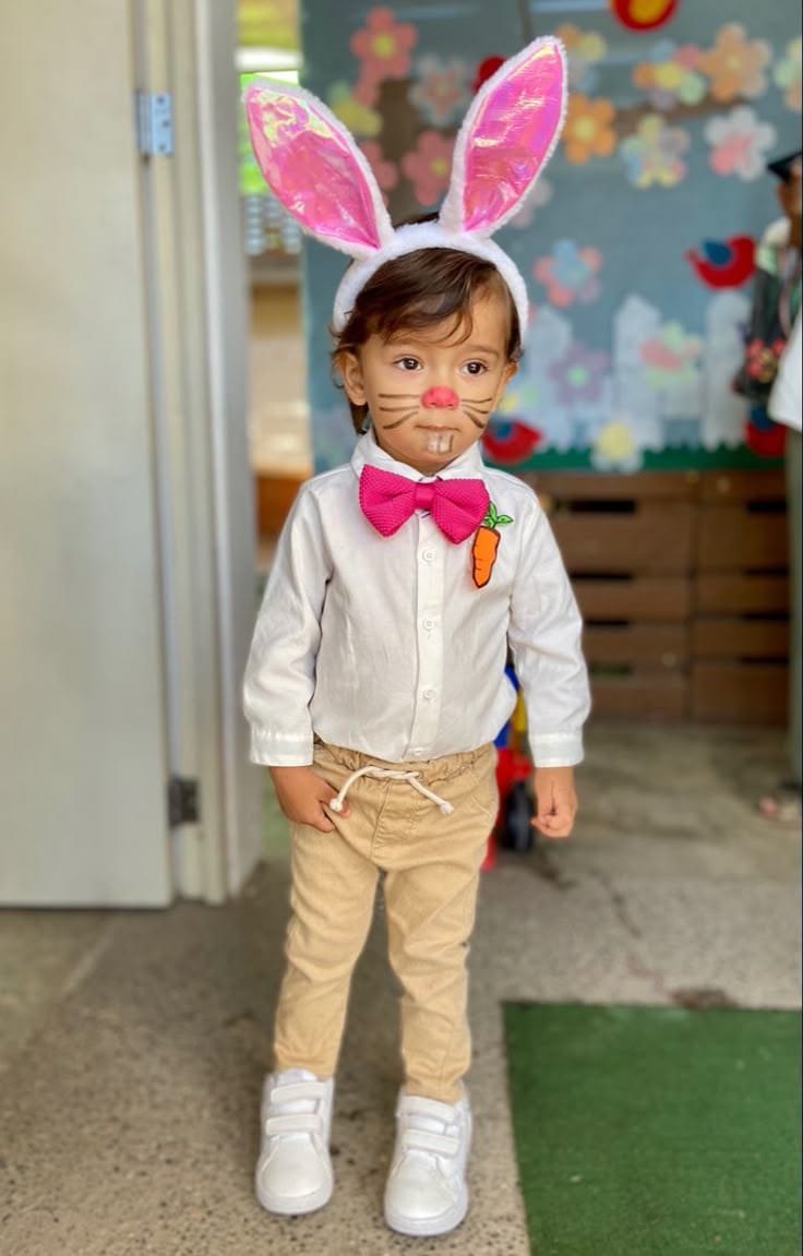 Instrucciones: Viste al niño con leggings y una camiseta a juego, y coloca el tutu encima. Completa el disfraz con una diadema que tenga orejas de conejo, que puedes hacer tú mismo con cartulina o goma eva y una diadema básica.