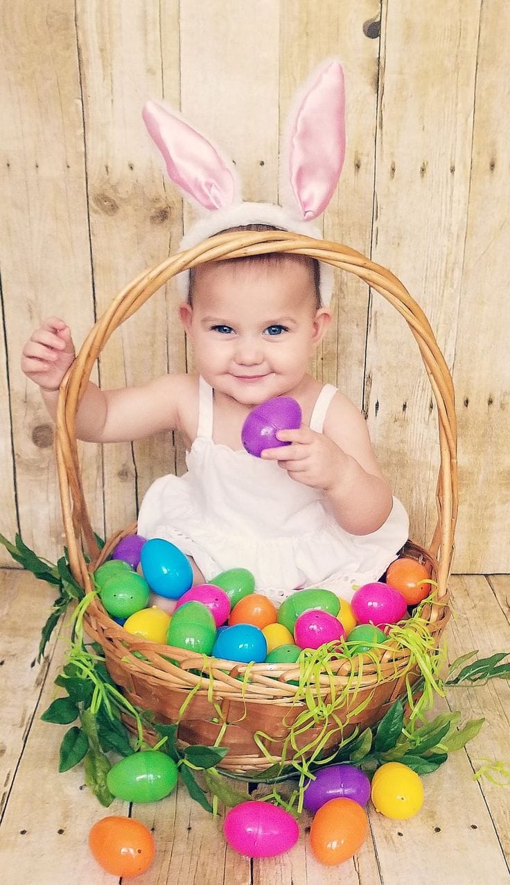 Instrucciones: Viste al bebé con un enterito con estampado de conejo o en colores pastel. Añade orejas de cartón pegadas a una gorrita suave para completar el look.