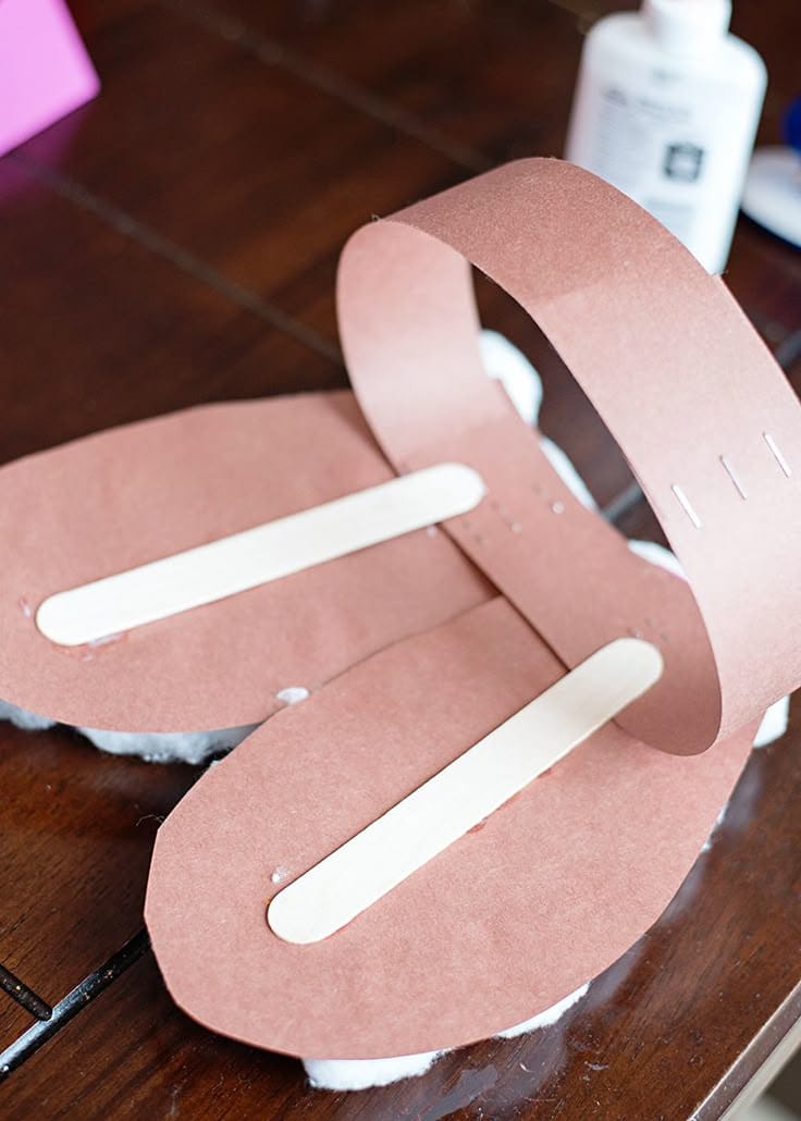 Instrucciones: Recorta dos grandes orejas de conejo en cartulina o goma eva y pégalas a una diadema. Puedes decorarlas con colores y detalles adicionales.