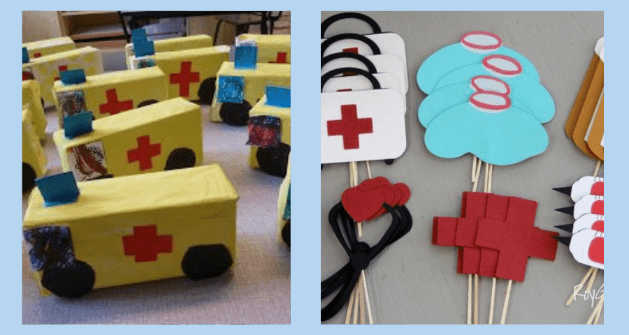 Actividades para los mas pequeños: Para los que estan en jardin o los primeros grados, pueden pintar dibujos relativos a la Cruz Roja, hacer murales, disfrazarse y jugar a ser miembros de la Cruz rojas, hacer manualidades como ambulancias con cajitas, aqui te dejamos algunas fotos.
