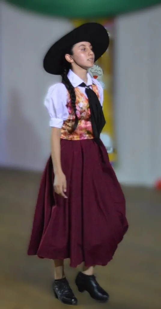 El malambo es una danza desafiante y llena de energía que generalmente realizan los niños. La vestimenta típica incluye bombachas de campo, botas de potro, camisa y chaleco. Los elementos esenciales son fáciles de conseguir y muchas veces se pueden encontrar en ferias o tiendas de ropa usada. Un detalle importante es el sombrero de ala ancha, que le da el toque final al atuendo de un auténtico gaucho. ¡No olviden las boleadoras para un efecto impresionante!