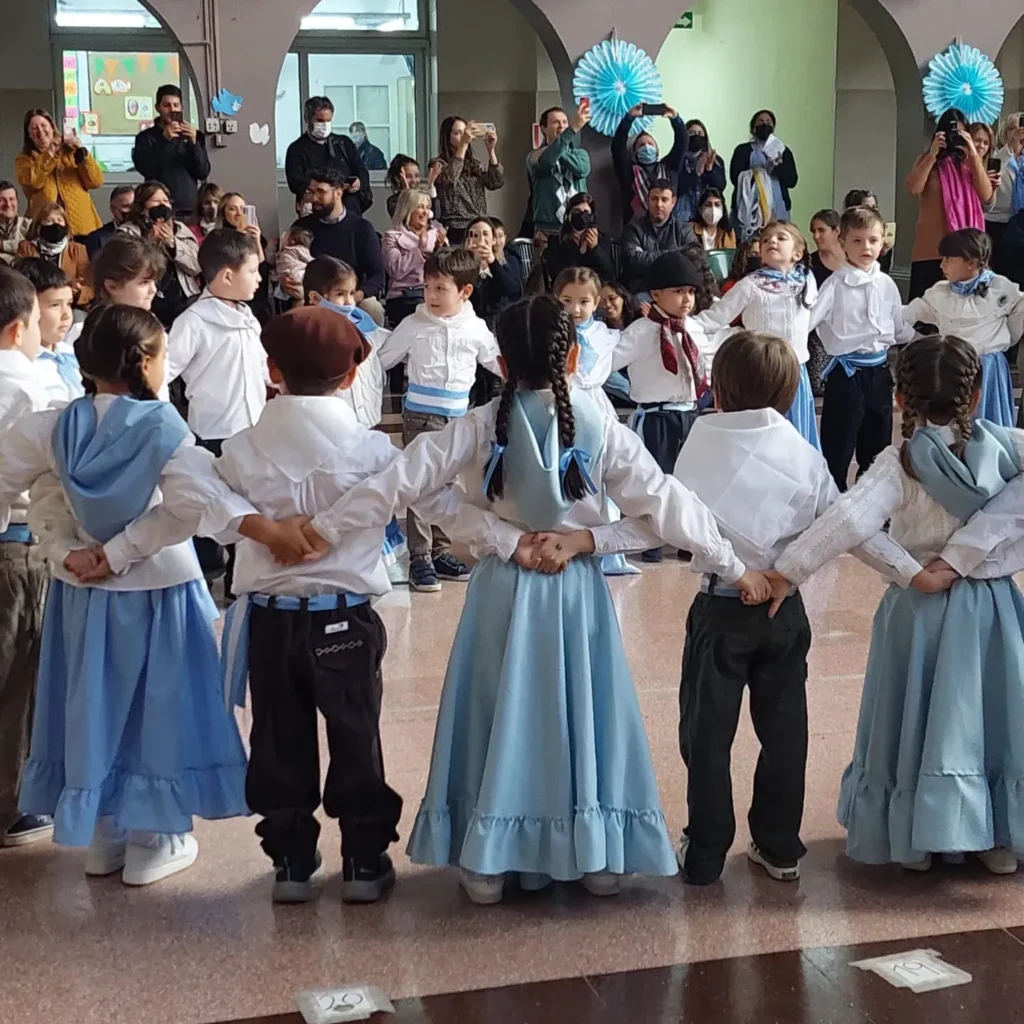 El pericón es una danza de grupo y coordinación. Para los niños, bombachas de campo, camisas blancas y chalecos son la elección estándar. Las niñas pueden usar vestidos largos y amplios, con enaguas para darle más volumen. Los colores patrios (celeste y blanco) son los más recomendados. Un detalle importante es la faja para los niños y los moños para las niñas, que pueden hacerse fácilmente con tela de algodón.