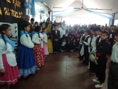 niños listos para baolar la chacarera en un acto escolar