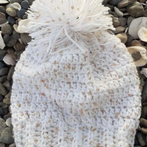 Un gorro con pom pom tejido en lana, resplandeciente con sutiles brillos dorados. Esta pieza combina la calidez y el encanto invernal con un toque de elegancia festiva. Perfecto para añadir un destello de estilo a cualquier atuendo durante las celebraciones de la temporada.