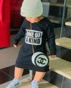 Un look adorable para cualquier ocasión. Con un gorro chic y un maxi buzo, esta niña irradia estilo y comodidad. Perfecto para días frescos de otoño o invierno, esta combinación es una declaración de moda para los más pequeños.