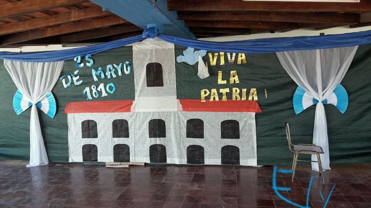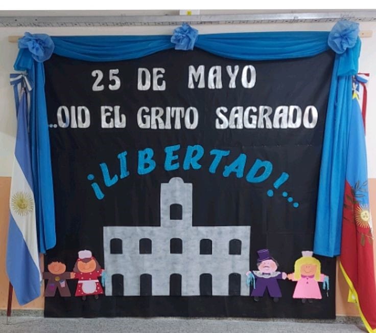 Para realzar la importancia del acto escolar, los telones y decoraciones juegan un papel clave. Pueden transformar cualquier espacio en un escenario lleno de color y significado. Desde telones con imágenes alusivas como personajes de la epoca, escarapelas y las icónicas cintas celeste y blanca, hasta decoraciones más creativas como faroles antiguos, y elementos que representen el Cabildo. Todo esto ayuda a crear un ambiente que invite a reflexionar sobre nuestra identidad nacional.