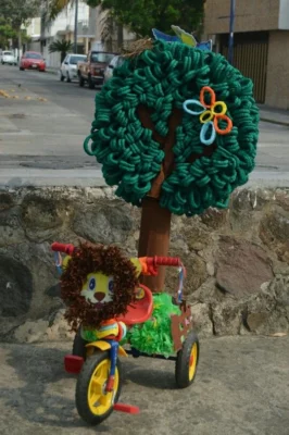 Decorar un triciclo en forma de árbol es una forma divertida de darle un toque festivo. Para comenzar, crea una estructura en la parte trasera usando cartón forrado de marrón para simular el tronco del árbol. En la copa, utiliza tiras de lana o de papel verde para representar las hojas. Agrega pájaros y flores para un acabado encantador.
