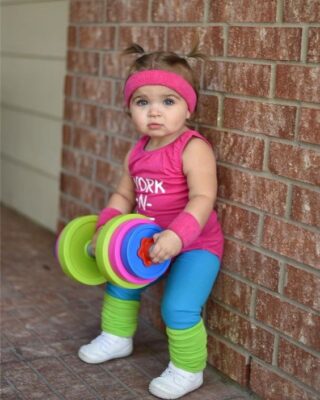 Viaja en el tiempo con nuestro fácil disfraz de los años 80. Crea el look con un body vibrante sobre leggings, completa el estilo con una banda para el sudor y voilà, ¡tendrás al bebé más retro de Halloween! Un toque sencillo para que tu pequeño rockee la década de los 80.