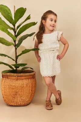 conjunto falda y top de encaje formal niña