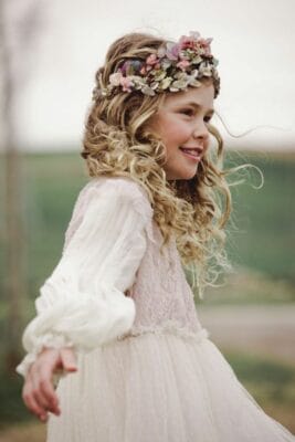 bucle y corona flores peinado niña