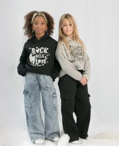 En la coleccion de la marca Van Dike otoño invierno 2023 se destacan los looks a la moda para nenas con pantalones anchos y maxibuzos. Tambien hay pantalones jardineros.Los pantalones pueden ser de gabardina o jeans estilo cargo o wide leg, tambien de algodon frisado estilo palazzo, para combinarlos estan...